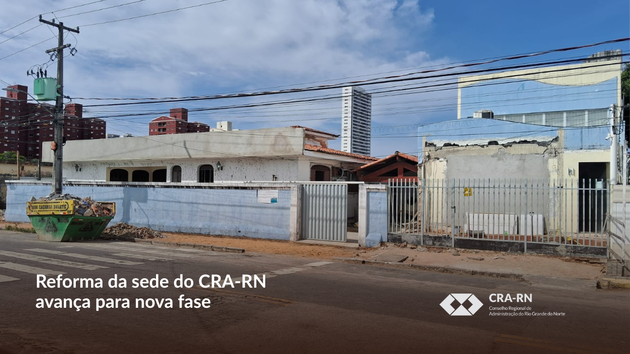 O CRA-RN agradece a compreensão de todos e reforça que a reforma tem como objetivo oferecer, em breve, uma sede mais moderna, acessível e adequada às necessidades dos profissionais da Administração no Rio Grande do Norte.
