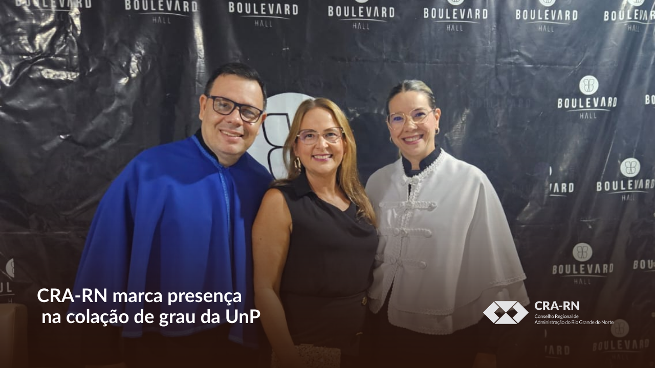 O Conselho Regional de Administração do Rio Grande do Norte (CRA-RN) esteve presente na Colação de Grau da Universidade Potiguar (UNP), realizada no dia 18 de março de 2026, no Boulevard, celebrando a formação de novos profissionais da área.